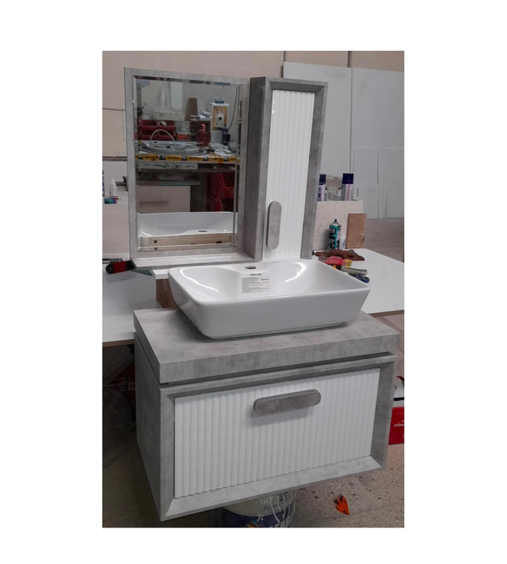 تولیدی ثامن الحجج آماده ارائه سازی انواع آینه باکس و روشویی کابینتی ضدآب می باشد . همانطور که ملاحظه میکنید این فول ست برای فضای بزرگ بسیار مناسب است و از زیبایی و ظرافت فوق العاده برخوردار است .عرض این کابینت40 سانتی متر و طول کابینت 70سانتی متر می باشد و سنگ روشویی از برند گاتریا چینی نام است و به ابعاد عرض 36 سانتی متر و طول 55.5 سانتی متر است .ابعاد اینه این فول ست عرض 40 سانتی متر و ارتفاع60 سانتی متر است و باکس کنار اینه عرض 23 سانتی متر و ارتفاع 60سانتی متر است. توجه بفرمایید که باکس کنار آینه دارای دو طبقه و یک جاحوله ای است . و کابینت به صورت داشبوردی باز میشود و دارای دو لولا و یک جک است.
