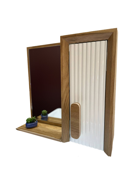 تولیدی ثامن الحجج آماده ارائه سازی انواع آینه باکس و روشویی کابینتی ضدآب می باشد . همانطور که ملاحظه میکنید این فول ست برای فضای کوچک و محدود بسیار مناسب است و از زیبایی و ظرافت فوق العاده برخوردار است .عرض این کابینت26 سانتی متر و طول کابینت 47سانتی متر می باشد و سنگ روشویی از برند پارس سرام است و به ابعاد عرض 26 سانتی متر و طول47 سانتی متر است .ابعاد اینه این فول ست عرض 30 سانتی متر و ارتفاع 50 سانتی متر است و باکس کنار اینه عرض 23 سانتی متر و ارتفاع 50سانتی متر است. توجه بفرمایید که باکس کنار آینه دارای دو طبقه و یک جاحوله ای است . و کابینت به صورت داشبوردی باز میشود و دارای دو لولا و یک جک است.
