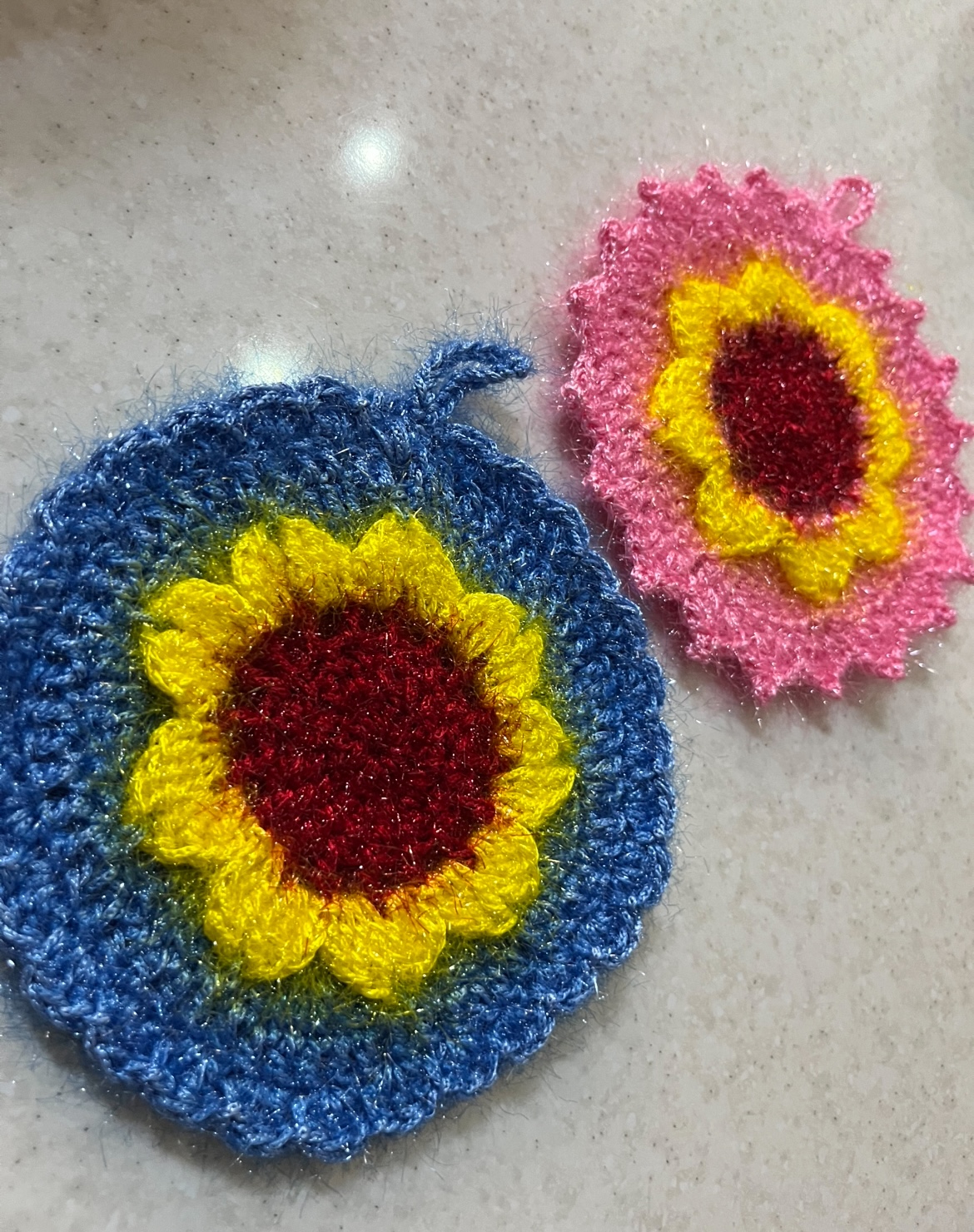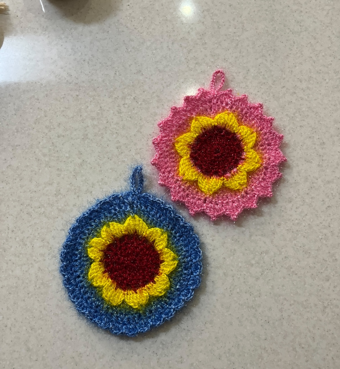 اسکاج بافتنی بسته دو عددی ؛ مدل آفتابگردان از جنس نخ سوزنی باکیفیت تهیه شده و بسیار زیبا و خاص است 🌱از مزیت این نخ سوزنی این است که ظروف را خط و خش نمی اندازد اما در عین حال بسیار تمیزکنندگی قوی دارد.