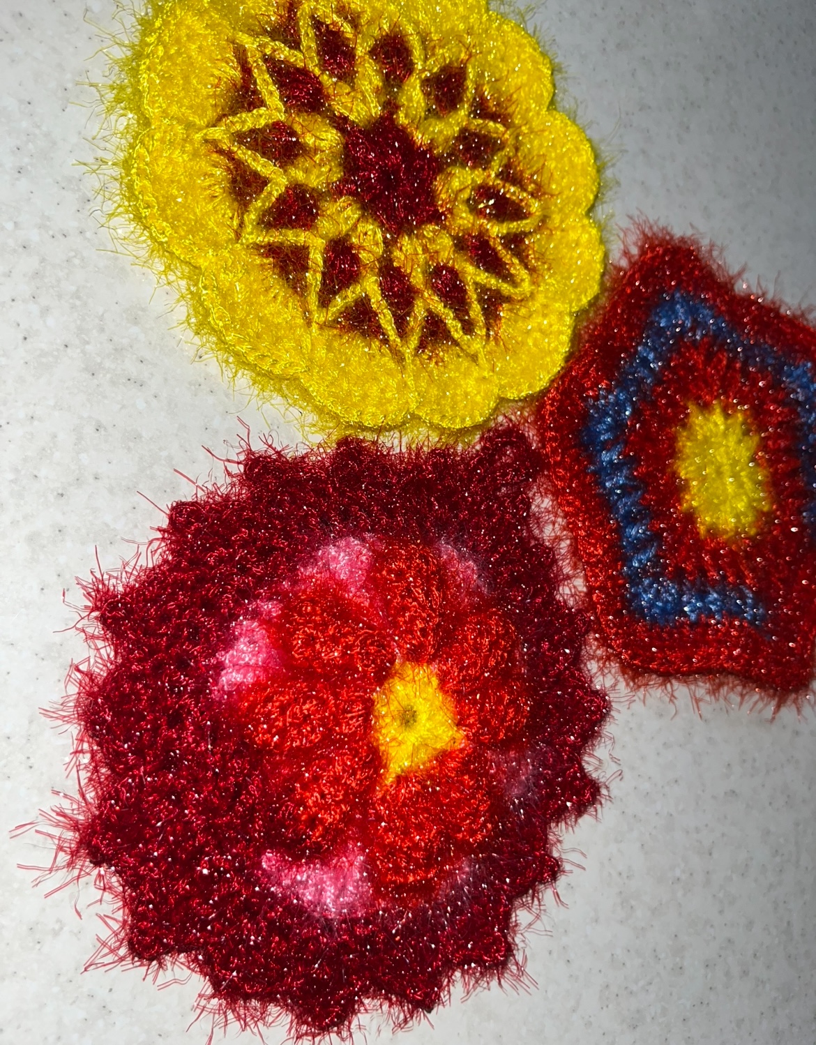 اسکاج بافتنی بسته سه عددی ؛ مدل آفتابگردان از جنس نخ سوزنی باکیفیت تهیه شده و بسیار زیبا و خاص است 🌱ازمزیت این نخ سوزنی این است که ظروف را خط و خش نمی اندازد اما در عین حال بسیار تمیزکنندگی قوی دارد.
