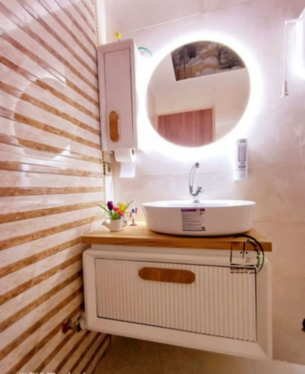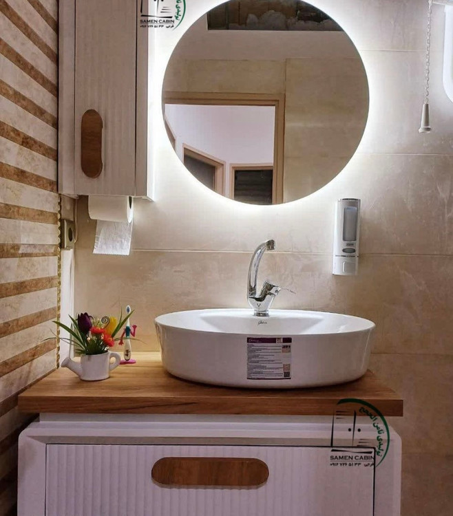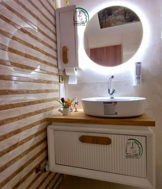 کابین + سنگ بیضی گاتریا چینی نام + آینه بک لایت دارای سنسور حرکتی + باکس کنار آینه می باشد .