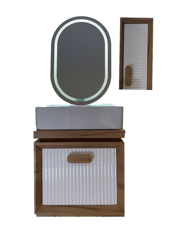 کابینت + سنگ روشویی + آینه + باکس کنار آینه